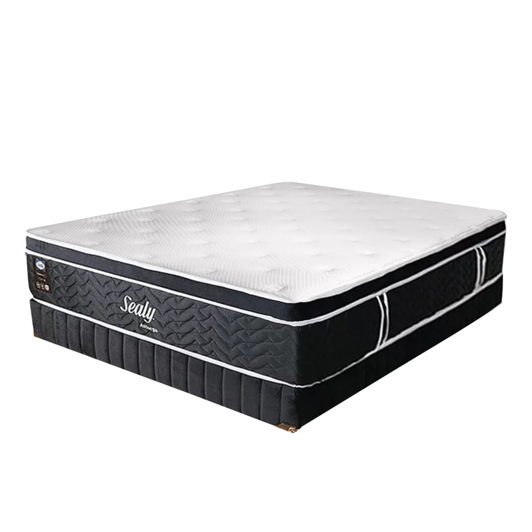 Experimenta un nivel superior de descanso con la cama Astorga de la línea Elegance de SEALY. Con 38 cm de altura, esta cama combina soporte firme, tecnología FORM-I para estabilidad indeformable, y un acolchado Euro-Top que aporta lujo y suavidad justo al contacto. Cubierta de punto fresco, espumas de alta densidad, y poliesferas de adaptación te aseguran una superficie cómoda, respirable y que no transmite movimientos. Garantía de 10 años. Ideal para quienes buscan firmeza real con toques elegantes de confort y durabilidad.